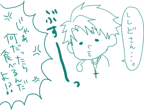 「何だったら食べれるの??」って聞かれたから「何でもあんまり食べたくない。」って言ったんだ。そしたら「じゃあ晩御飯も食べたくないんでしょ??」って言われたから「いやそういうわけじゃないけども。お腹はすくんだけども。」と言ったんだよ。「意味不明。」って斬られたよ。私もそう思うよ。