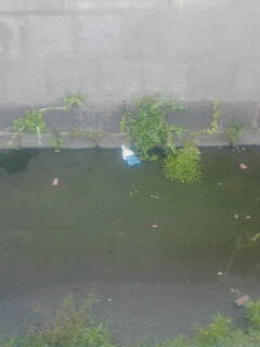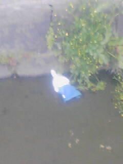 水路に倒れるミッフィー人形。⇒ズームした画像。